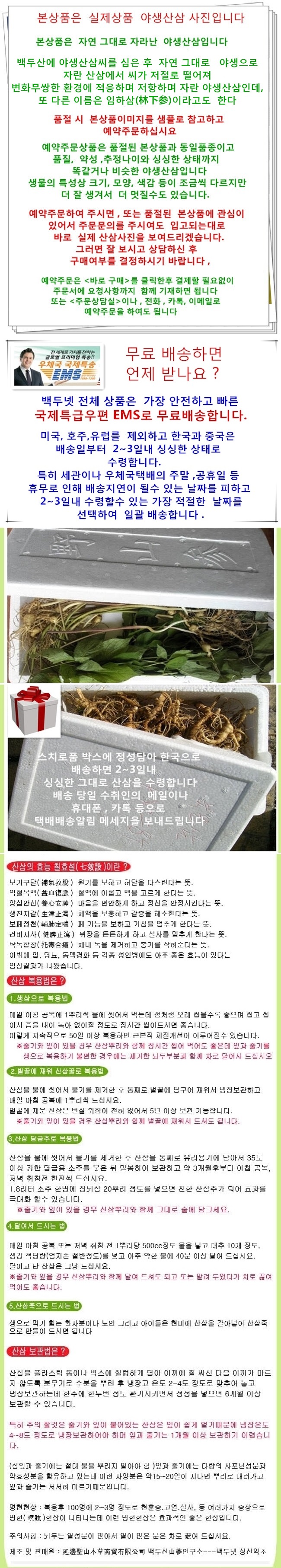 | 제조사/원산지 | 야생산삼 ,임하삼(林下蔘 ) |