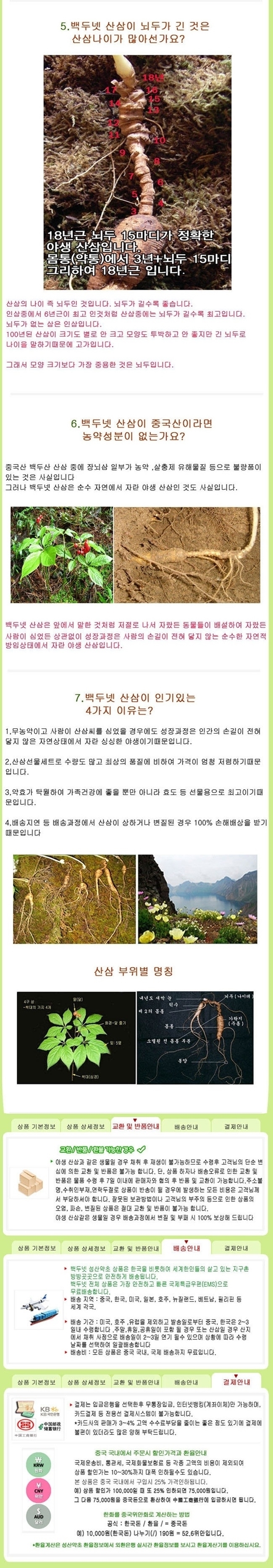 | 제조사/원산지 | 야생산삼 ,임하삼(林下蔘 ) |