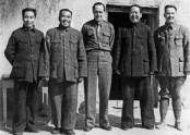 장제스의 참모장, 중국-버마-인도 전구의 미국 총사령관을 지낸 조지프 스틸웰 중장의 친구이자 정치적 조언자 존 페이턴 데이비스가 1944년 10월 옌안에서 중국 공산당 수뇌부와 함께 찍은 사진. 왼쪽부터 저우언라이, 팔로군 총사령 주더, 데이비스, 마…(2016-03-24 22:06:44)