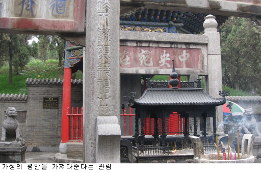 ▶‘삼국지’와 소림사의 고장 뤄양(洛陽)=한(漢)나라의 수도였던 뤄양은 ‘삼국지’와 ‘소림사’의 주무대이기도 하다. 특히 뤄양에는 중국인들로부터 무예와 재물의 신으로 추앙받는 관우의 묘 ‘관림(關林)’이 있다. 관우의 머리가 묻혀 있는 곳에는 두 개의 구멍이 나 있다. 중국인들은 오른쪽 구멍에 동전을 넣어 종소리가 나면 가정이 평안해진다고, 왼쪽 구멍에 동전을 넣어 소리가 나면 돈을 많이 벌 수 있다고 믿는다. 그래서 늘 동전 10개를 준비해 오른쪽에는 동전 6개를, 왼쪽에는 동전 4개를 넣으며 복을 기원한다.