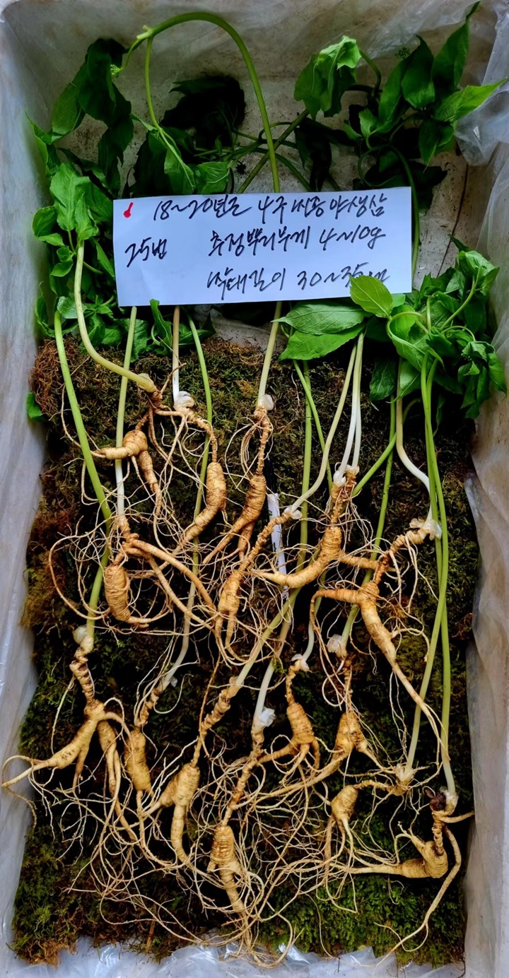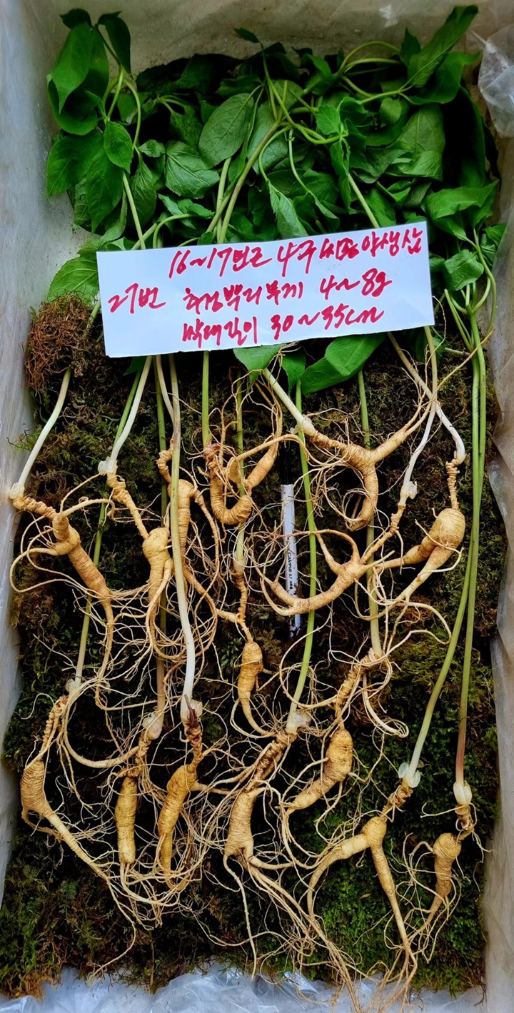 잎장있는 18ㅡ20년근 4-5구 씨종 야생삼입니다